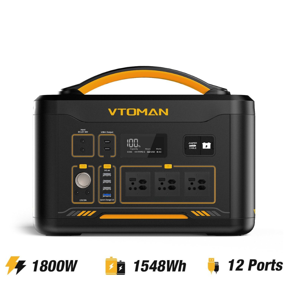 The VTOMAN Jump 1800 already comes with a massive 1548Wh capacity, but you can double it by adding an extra battery to reach 3096Wh capacity. This makes it an excellent choice for extended camping trips or van life, ensuring you have more than enough power for multiple days!